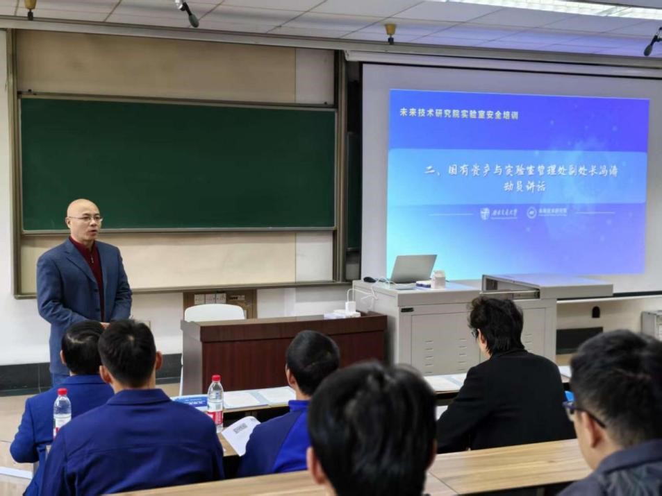 接着,国有资产与实验室管理处副处长冯涛作动员讲话。他指出,“科研成果是跟在后面的无数个0,而实验安全则是决定一切意义的那个1”,一旦安全这个“1”倒下,再丰硕的成果也瞬间化零。他呼吁,全体师生务必将安全意识内化于心、外化于行,在学习、工作和生活的方方面面筑牢安全防线。冯处长强调,唯有守护好个人安全这一前提,才能为学校的发展与复兴贡献坚实的力量。