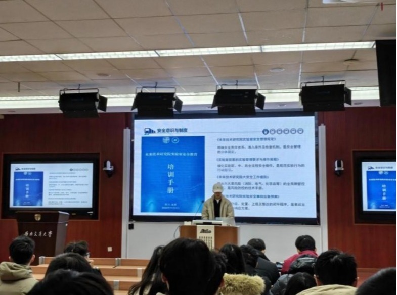 规程讲解阶段,来自新能源储能未来技术研究中心的实验室安全员、2024级硕士研究生刘凡麟,首先从理论层面系统阐述了未来院有关实验室安全管理制度及实验室安全事故的类型与安全设施的重要性,精准识别了具体的安全风险点,并提出了针对性的预防措施,强调了规范操作是保障人身安全与实验顺利进行的关键,提醒大家在日常实验操作中时刻保持警觉,特别注重安全细节。来自生物结构学未来技术研究中心的实验室安全员、2024级硕士研究生韦荣新,通过剖析本院实验室器材的真实案例,提醒了全体师生在日常实验中应时刻保持警觉、注重细节,才能为实验室的安全操作提供了保障。