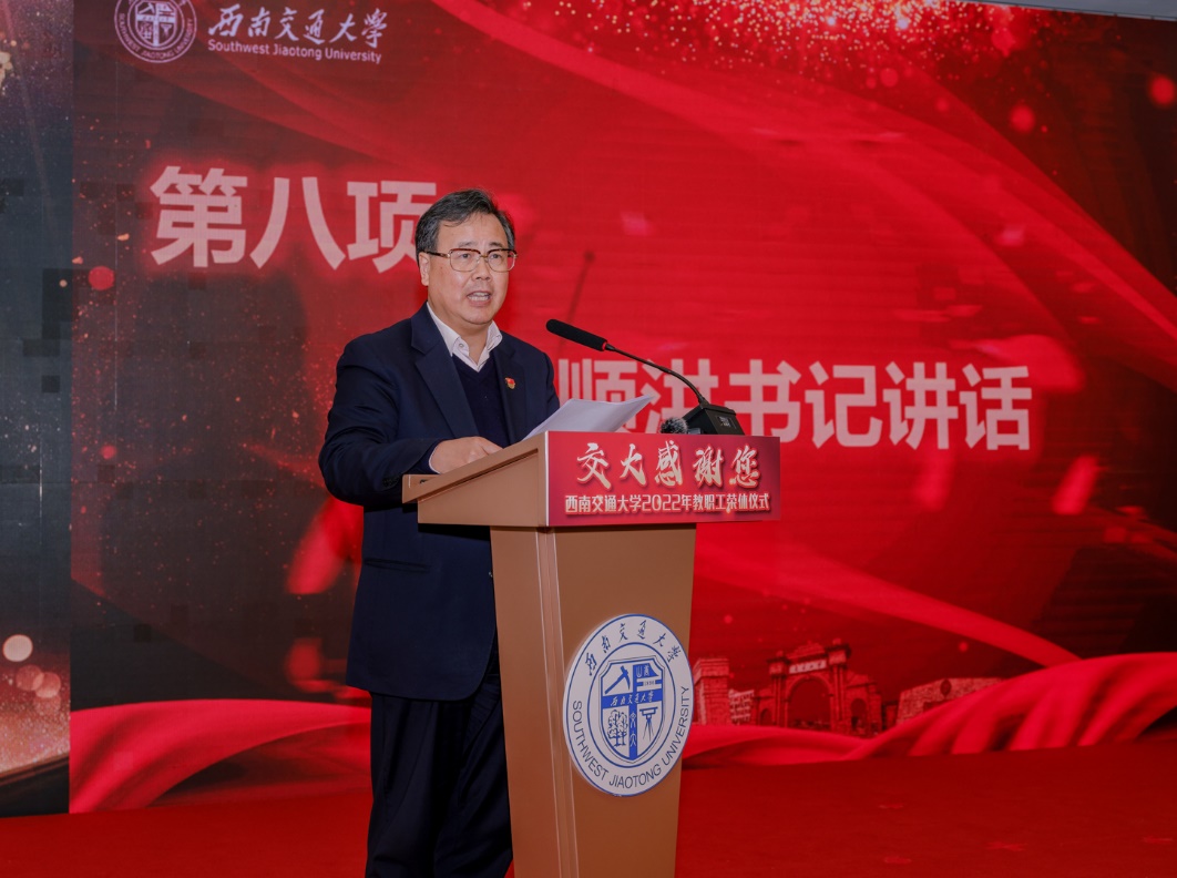 王顺洪以《桃秾李郁 岁月芳华》为题发表讲话。他表示,刚刚过去的一年,是党和国家发展史上极为重要的一年,也是学校具有里程碑意义的一年,学校这一年乃至近几十年取得的成就都是全体师生员工不懈努力、奋力拼搏的结果,饱含着大家的智慧、辛勤和汗水。他介绍了137位荣休教职工的构成,感谢他们数十年如一日奋战在立德树人第一线、管理育人第一线和服务育人第一线,为学校各项事业的蓬勃发展作出的重要贡献。他强调,学校党委一直高度重视离退休工作,把离退休工作放到学校事业发展全局中来进行谋划和落实。在学校第十五次党代会报告中,特别强调要“积极探索扶老助老服务新渠道,不断丰富离退休教职员工的精神文化生活”,并将“高度重视离退休干部、老教授疫情防控工作,切实保障老同志健康安全”列为学校2023年的重点工作。学校将进一步加强统筹保障,把老年健康驿站等方方面面工作落到实处,尽最大可能创造条件为离退休教职工多办实事,多办好事,坚决做好离退休教职工的各项服务工作,用心用情照顾好老同志,努力满足离退休教职工的多样化需求,让大家更加幸福地享受退休生活。他指出,退休既是一段职业生涯的结束,也是全新生活的开始,希望大家老有所学、老有所乐、老有所为,让习近平总书记提倡的“积极老龄观、健康老龄化”理念在西南交大得到深刻践行。同时,“荣休”并不意味着“休止、终止”,共产党员要继续发挥好作用,为学校改革建设发展发光发热。学校也将积极采取举措,为离退休教师搭建各类平台,期待大家一如既往地关心支持学校办学事业发展,助力学校加快建设“轨道交通领域世界第一的台湾a片