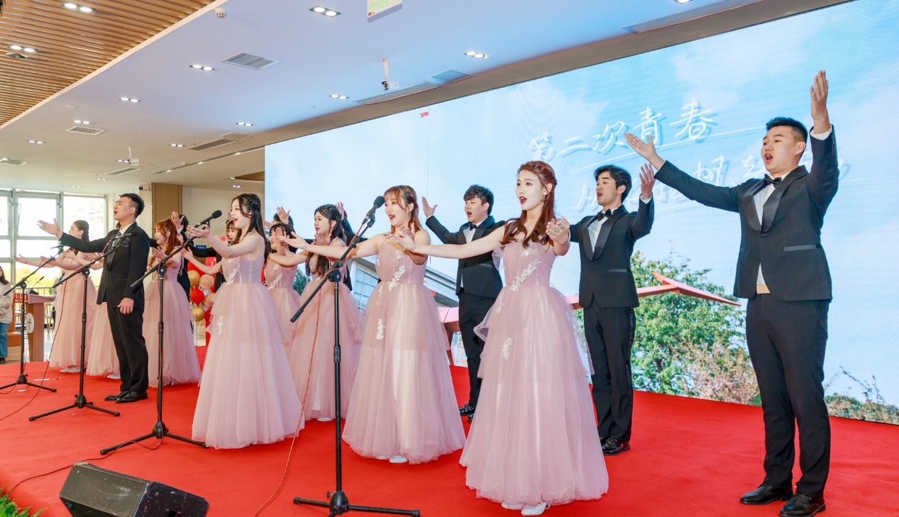 仪式最后,大学生艺术团倾情演唱《给您的歌谣》,以动人的歌声表达对教职工们倾尽丹心育桃李,奉献韶华铸师魂的真挚谢意。随后全场师生合唱校歌《文轨车书郅大同》,激昂有力的歌声回荡在现场,化作祝福,传递到每一位荣休教职工心中。