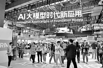 在杭州举办的2023云栖大会上,观众在“人工智能+”展馆参观人工智能产品及应用。新华社发
