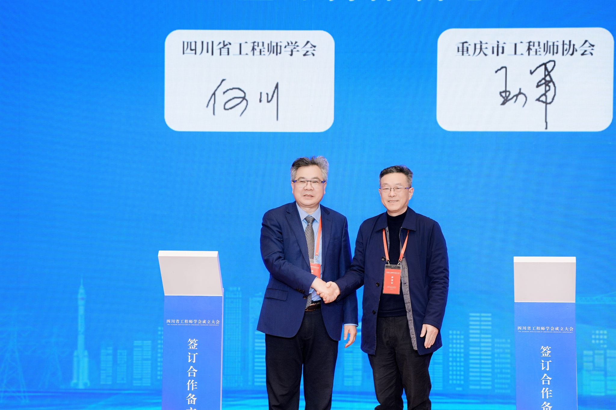 会上,何川院士与重庆市工程师协会理事长、重庆市科技局原副局长、一级巡视员、教授王力军签署了合作备忘录。