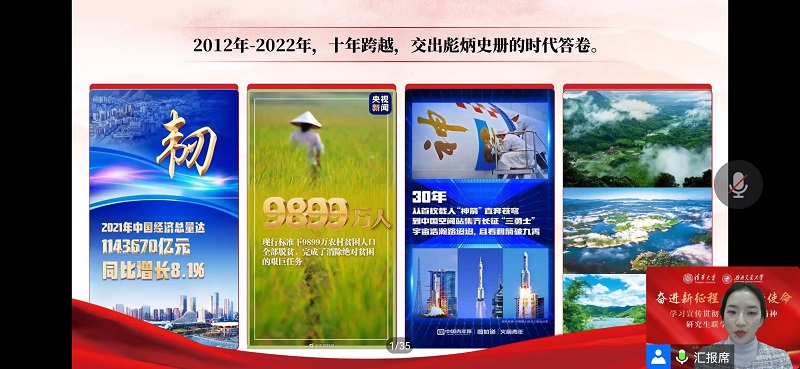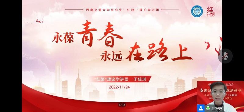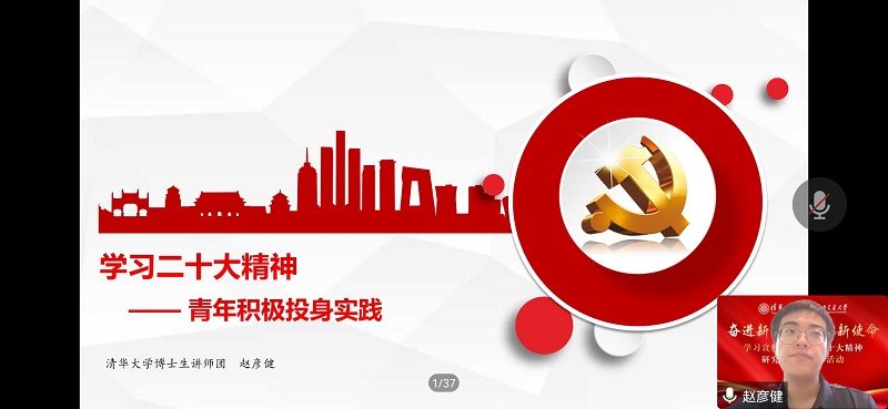 近日,我校研究生“红路”理论学讲团联合清华大学博士生讲师团成功开展以“奋进新征程,勇担新使命”为主题的学习党的二十大精神两校研究生联学联讲活动。各学院、党支部千余名学生通过腾讯会议、QQ课堂等方式共同参与本次活动。