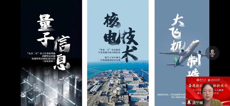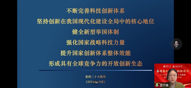 清华大学博士生讲师团成员、清华大学经济管理学院2021级硕士生庞宁婧以《大国重器背后的中国式浪漫——以新型举国体制实现科技自立自强》为题,与大家分享了关于我国是如何发挥举国体制优势以实现科技自立自强的思考与启示。并结合中国高铁发展史,阐释了“健全”新型举国体制对于实现科技自立自强的意义。
