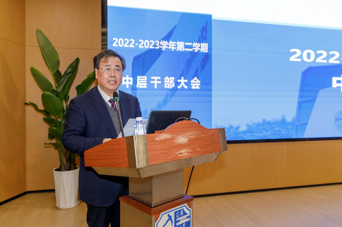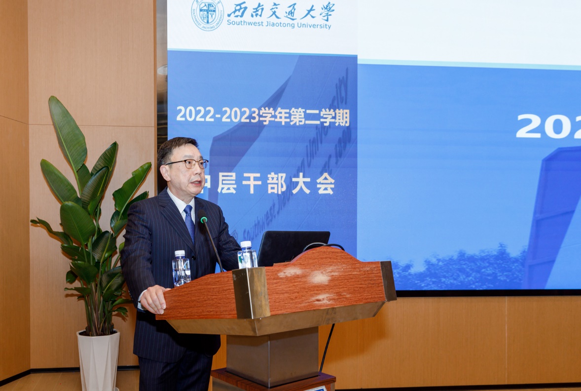 2023年是深入学习宣传贯彻党的二十大精神的开局之年,是贯彻落实学校第十五次党代会精神,加快推进新一轮“双一流”建设的关键之年。2月22日下午,学校在犀浦校区图书馆一号报告厅召开2022-2023学年第二学期中层干部大会,校长杨丹总结回顾2022年学校主要办学成绩、提出学校转型发展的思考、部署学校2023年重点工作。校党委书记王顺洪主持会议并讲话。全体在校校领导、校党委委员、纪委委员、中层干部参加会议。
