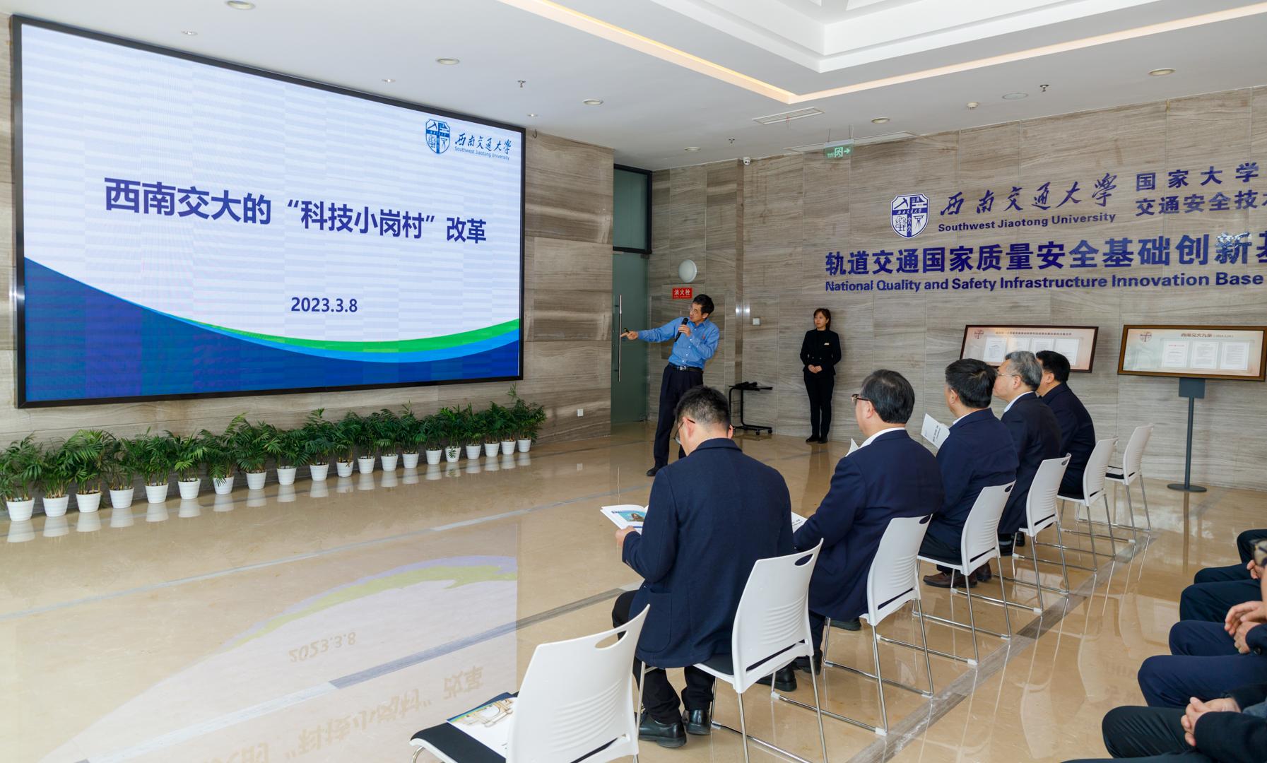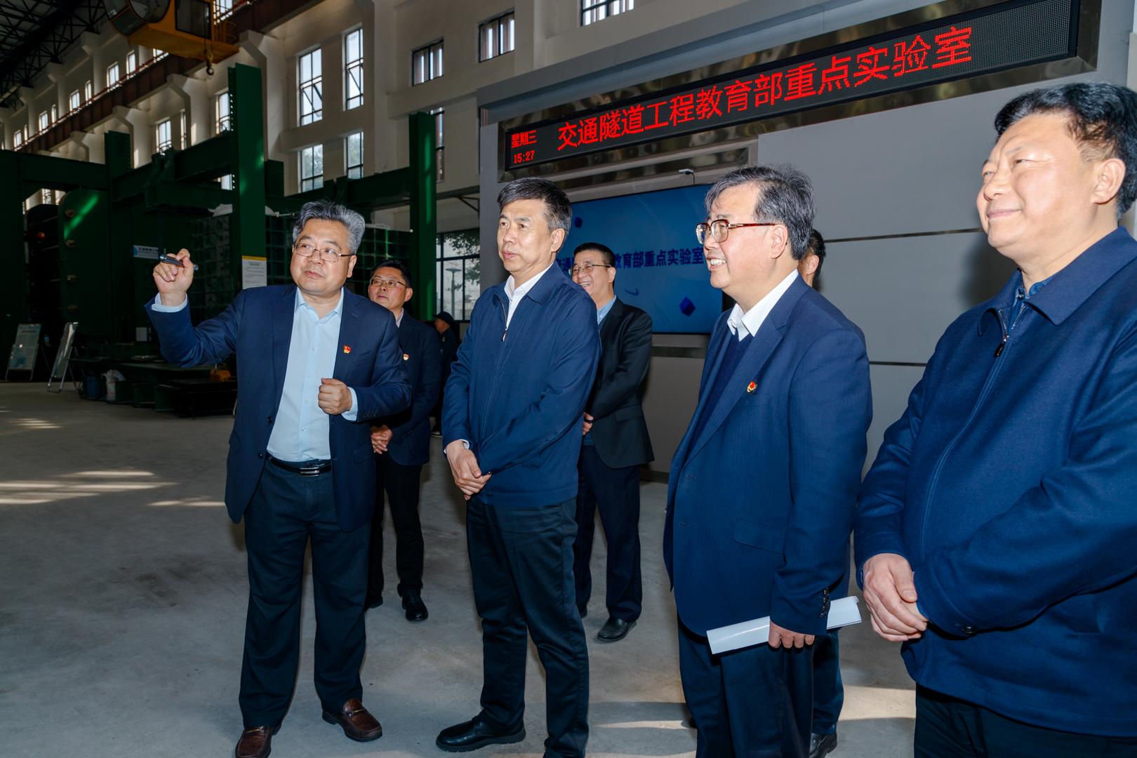 于立军调研了九里校区科技园、交通隧道工程教育部重点实验室、牵引动力国家重点实验室,听取学校职务科技成果权属混合所有制改革情况、实验室建设情况汇报,听取磁悬浮技术讲解,并乘坐由学校联合中车公司、中国中铁等单位协同攻关研发的世界首台高温超导高速磁浮工程化样车。于立军对学校改革发展、干部人才、基层组织建设情况给予充分肯定。
