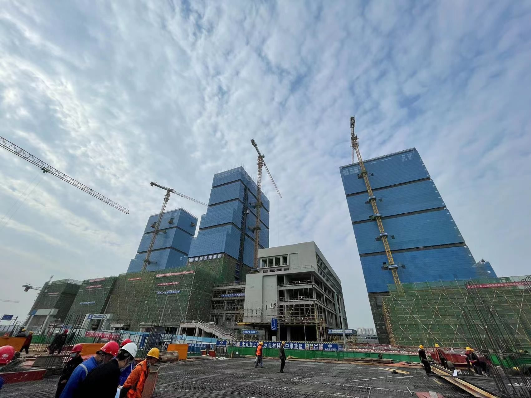 本次封顶的三期工程于2022年7月开工,净用地面积约1.97万平方米,总建筑面积约12.12万平方米,地下建筑面积约2.15万平方米,包括2个综合体,主要功能为图书馆、报告厅、综合展览馆、信息中心、科研与教师办公用房、科研平台与教师公寓等。在三期工程主体封顶前,前两期工程分别于2022年11月和2023年5月相继封顶。