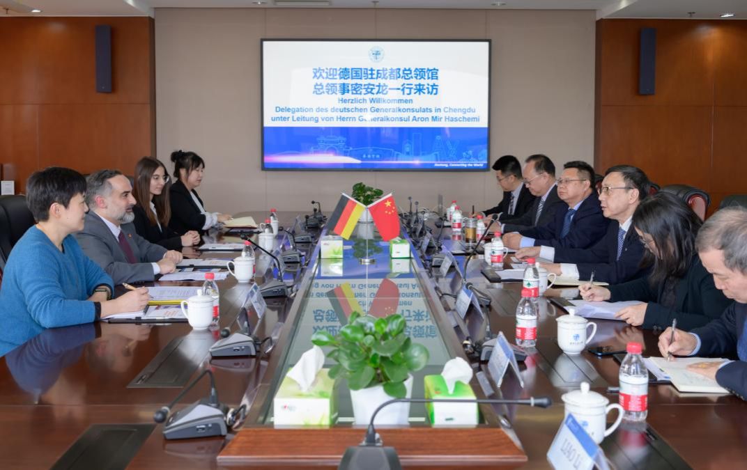10月27日下午,德国驻成都总领馆总领事密安龙(Aron Mir Haschemi)一行来校访问。校长杨丹会见了密安龙一行。副校长姚发明参加会见。