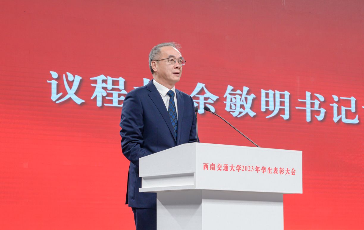 余敏明在大会上以《牢记嘱托,奋发进取,争做堪当强国建设、民族复兴重任的新时代交大人》为题发表了总结讲话。他首先向受到表彰的学生、辅导员表示了祝贺,勉励他们珍惜荣誉,再立新功。随后,余敏明在讲话中提出了四点希望:一是全体同学要牢记嘱托、奋发进取,努力成为堪当强国建设、民族复兴重任的新时代交大人。二是学生工作队伍要聚焦主责主业,用心、用情、用意,努力成为学生的人生导师和知心朋友。三是各学院要强化系统思维,统筹育人资源、汇聚育人合力,落实全员育人责任。四是各职能部门要聚焦立德树人根本任务,坚持深化改革创新,协同联动、群策群力,推动人才培养工作不断迈上新台阶。