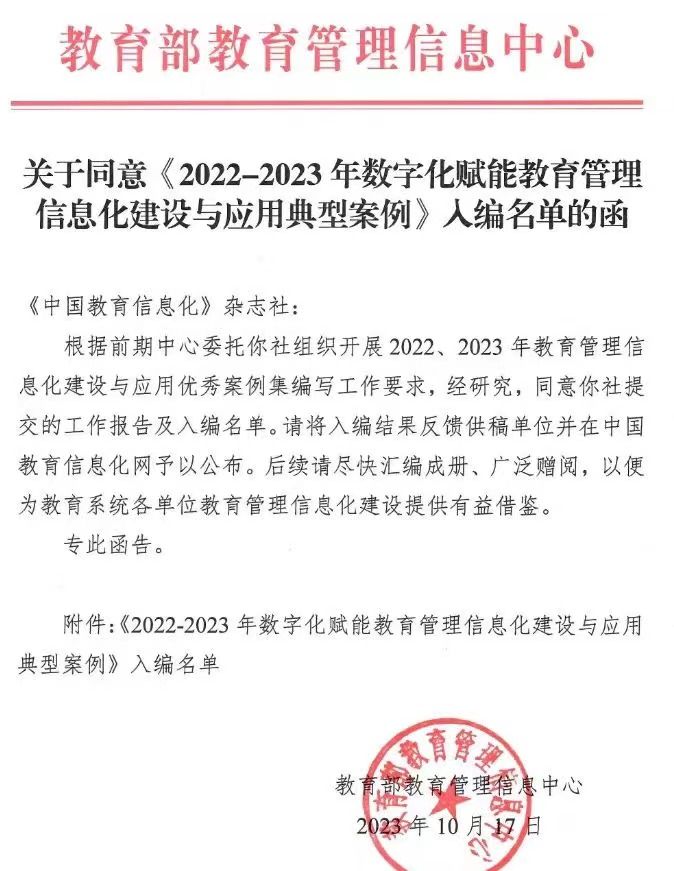 近日,教育部教育管理信息中心公布《2022—2023年数字化赋能教育管理信息化建设与应用典型案例》入编名单,台湾a片
