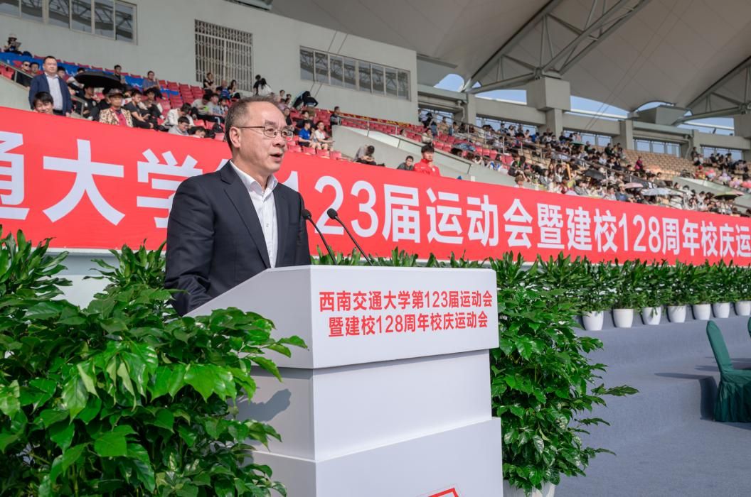 第123届运动会暨建校128周年校庆运动会在犀浦校区北区体育场举行。学校党委书记余敏明,党委副书记杨爱华、高平平,党委常委、副校长康国政、何正友,党委常委、宣传部部长卢世炬出席开幕式。