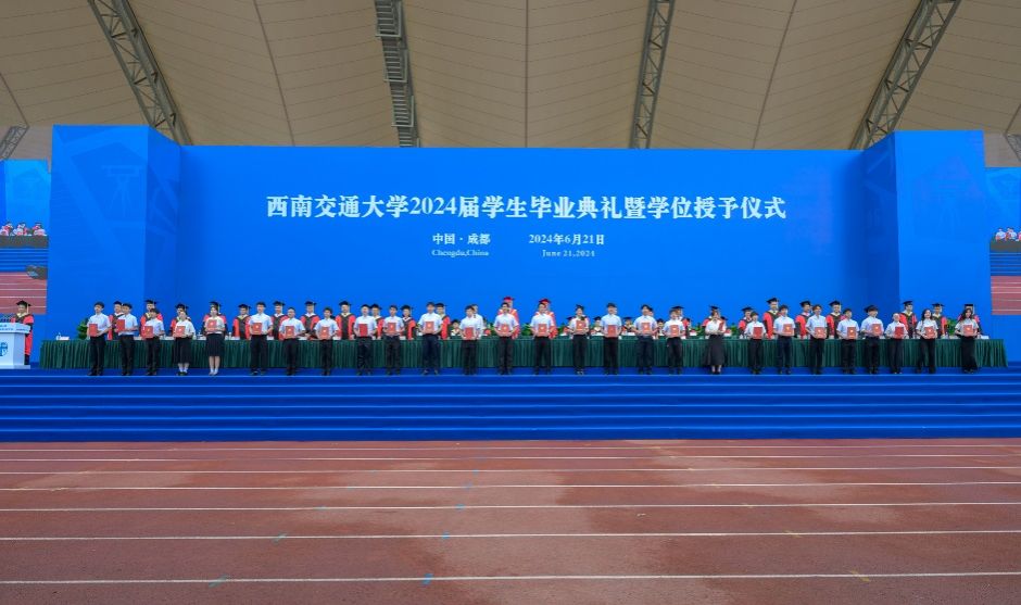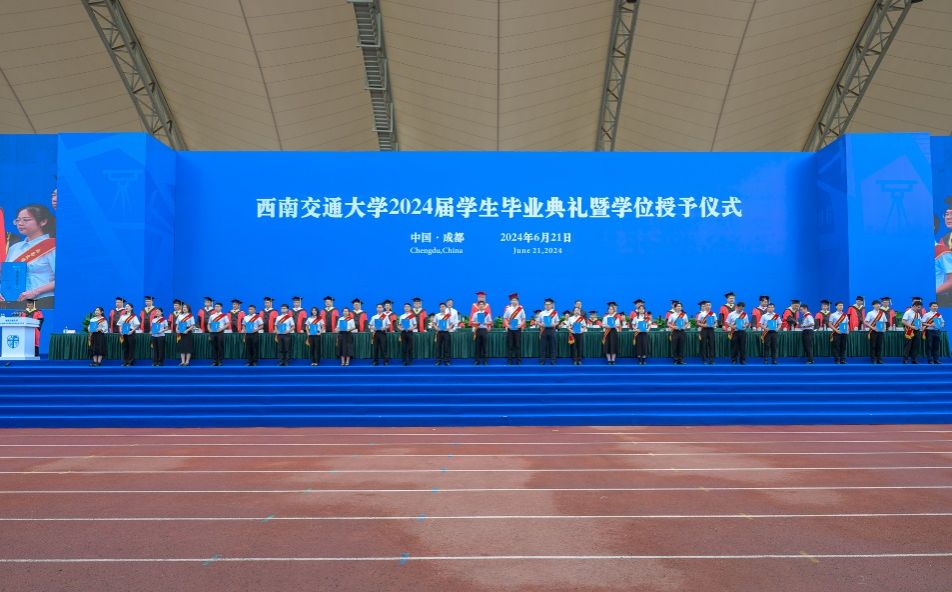 2024届学生毕业典礼暨学位授予仪式在犀浦校区北区体育场举行。校党委书记余敏明,校长、校学位评定委员会主席闫学东,教育部党建工作联络员石坚,中国科学院院士、校学位评定委员会副主席翟婉明,中国工程院院士、校学位评定委员会副主席何川,全体在校校领导,相关职能部处、各学院(中心、实验室)负责人出席典礼,教师代表、全体2024届毕业生参加典礼。典礼由校党委副书记高平平主持。